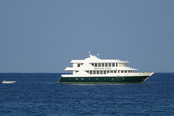 We have been to the Maldives three times before but always staying in resorts. The appeal of being pampered has always outweighed the limitations on diving. However in April 2017, encouraged by our friends the Days, we book a week on the Emperor Virgo so that we can explore further afield and get the most of this amazing marine environment. Despite coral bleaching and fishing there are still an abundance of shark, rays, big fish and smaller reef fish and on some dives we also find stunning soft and hard coral.
